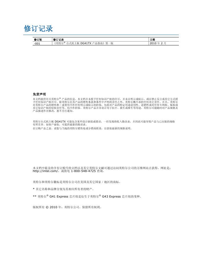 英特尔 台式机主板 DG41TX 产品指南.pdf