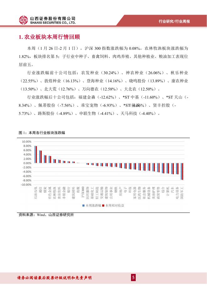 山西证券:农业行业周报:猪价近期旺季活跃,旺季后或仍承压.pdf