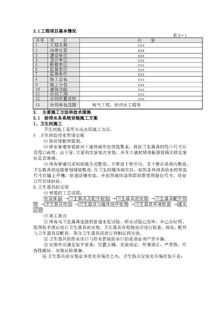某住宅工程给排水施工组织设计方案(Word.20页).doc