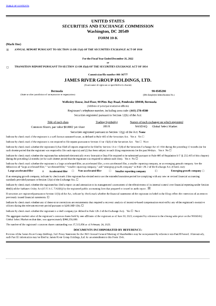 James River Group Holdings Ltd(JRVR)2022财年年度报告(英文版).pdf
