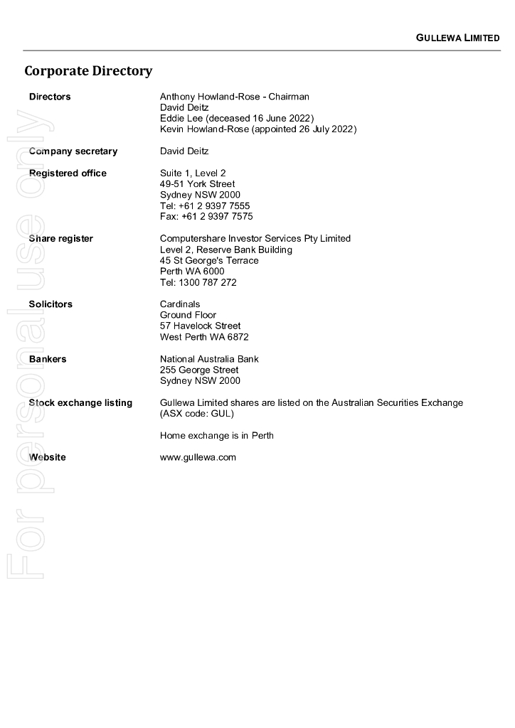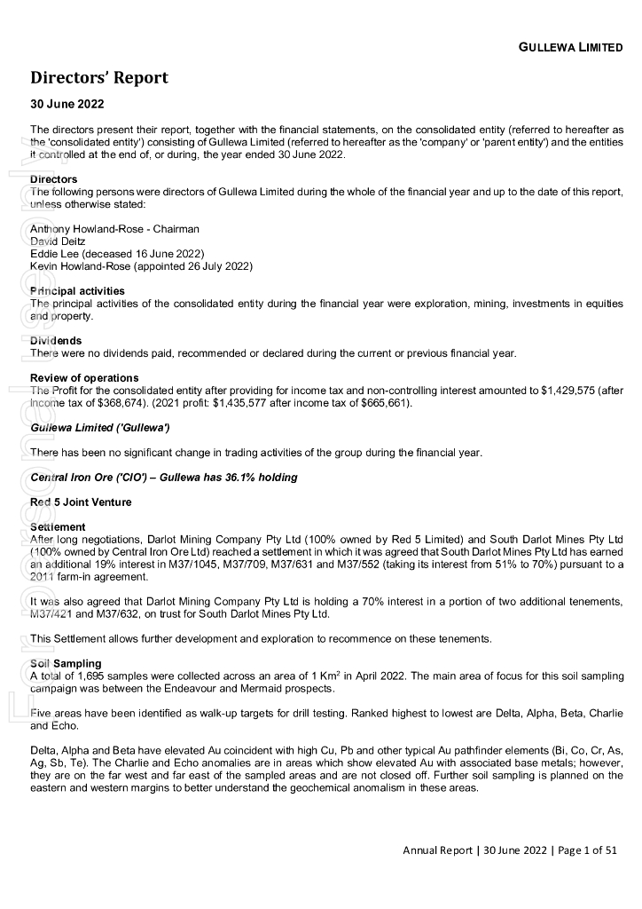 Gullewa Limited(GUL)2022财年年度报告(英文版).pdf