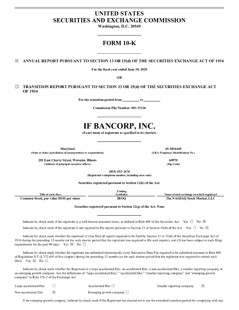 IF Bancorp, Inc.(IROQ)2020财年年度报告(英文版).pdf