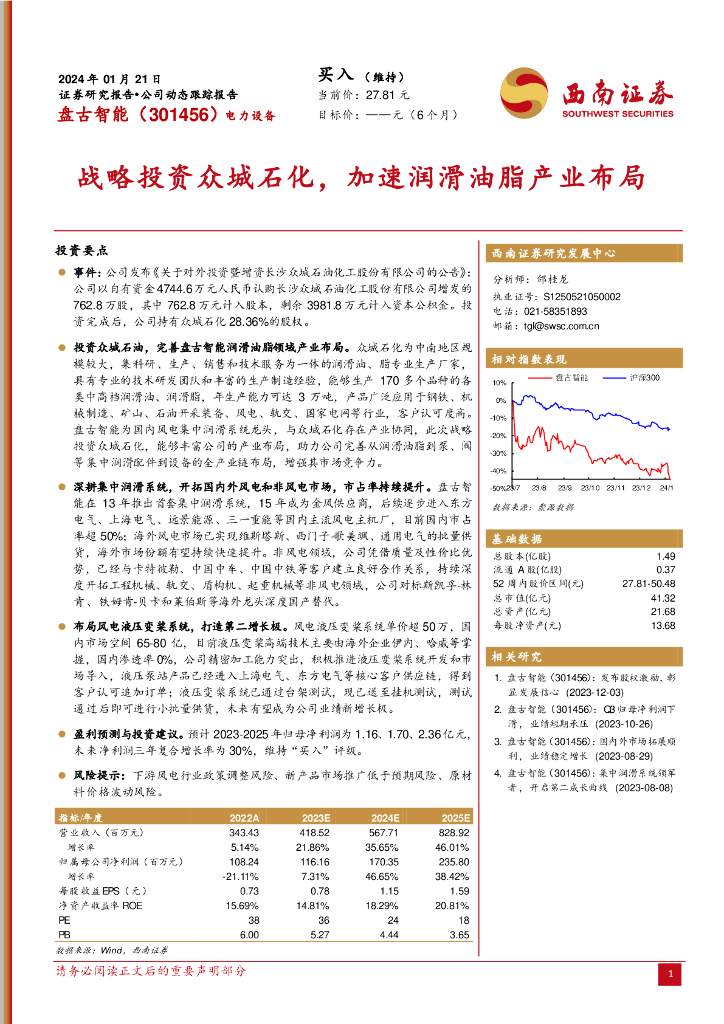 西南证券:盘古智能(301456)-战略投资众城石化,加速润滑油脂产业布局.pdf