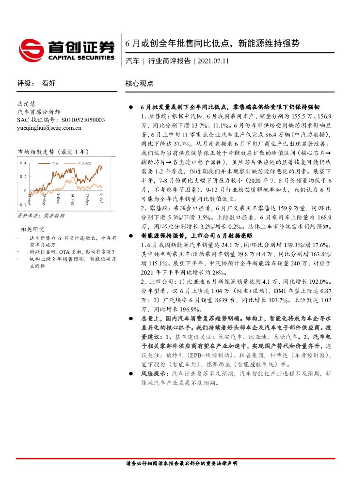 首创证券:汽车行业简评报告:6月或创全年批售同比低点,新能源维持强势.pdf