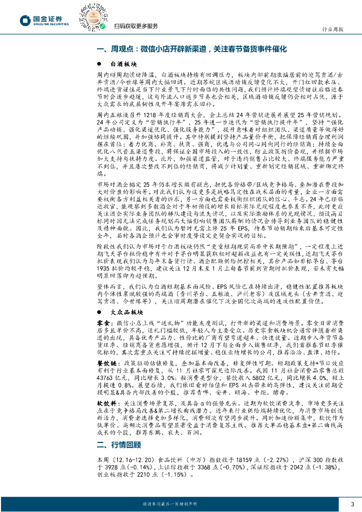 国金证券:食品饮料行业周报:微信小店开辟新渠道,关注春节备货事件催化.pdf