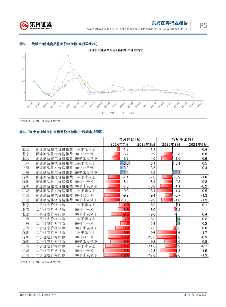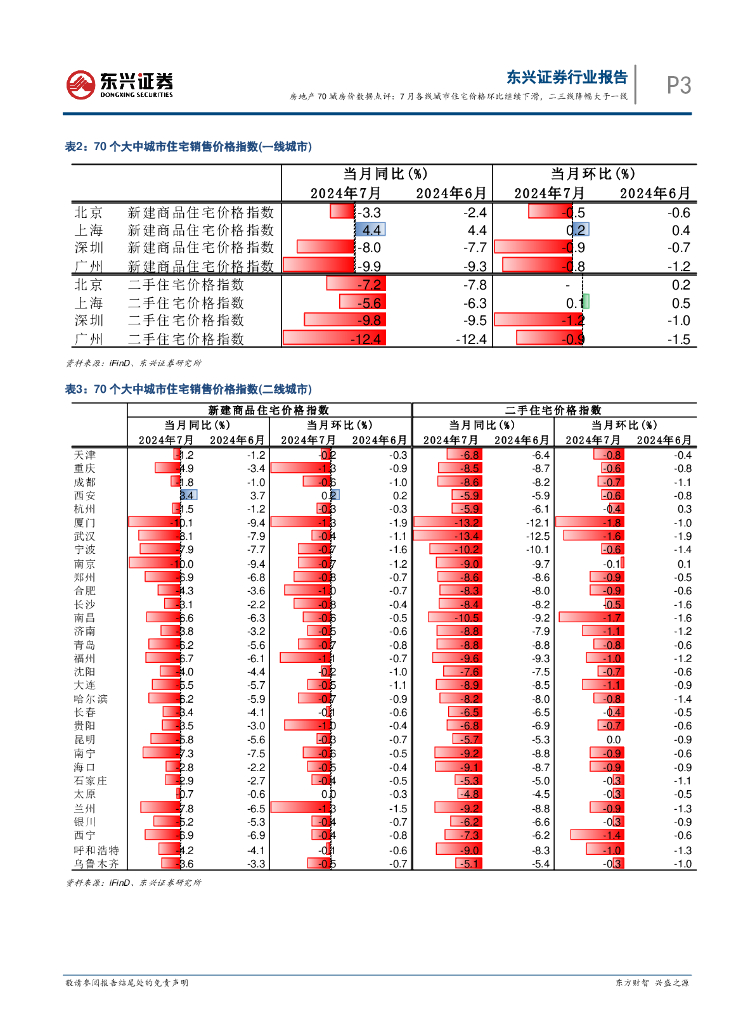 东兴证券:房地产70城房价数据点评:7月各线城市住宅价格环比继续下滑,二三线降幅大于一线.pdf