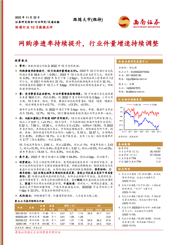 西南证券:快递行业10月数据点评:网购渗透率持续提升,行业件量增速持续调整.pdf