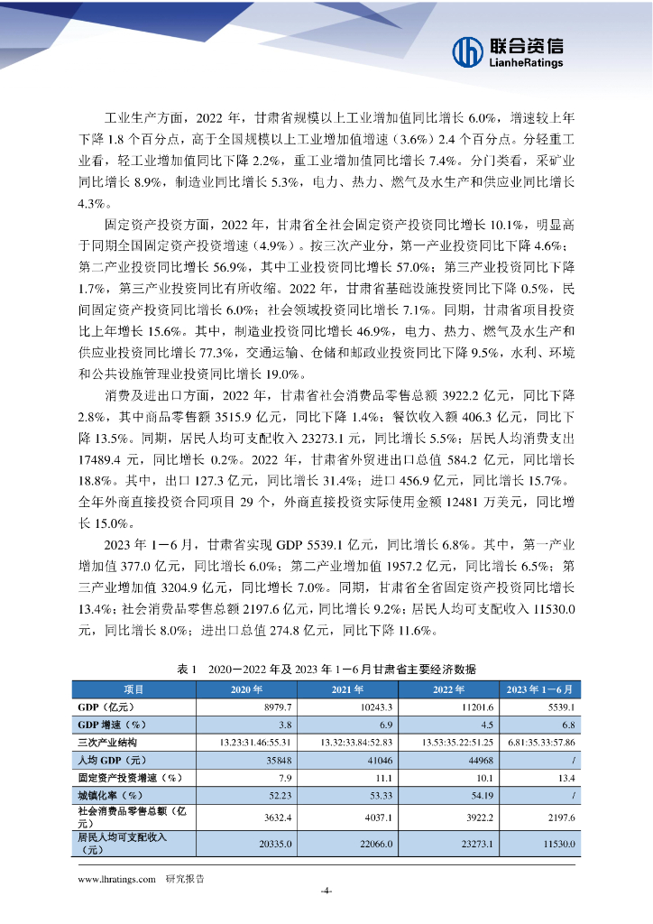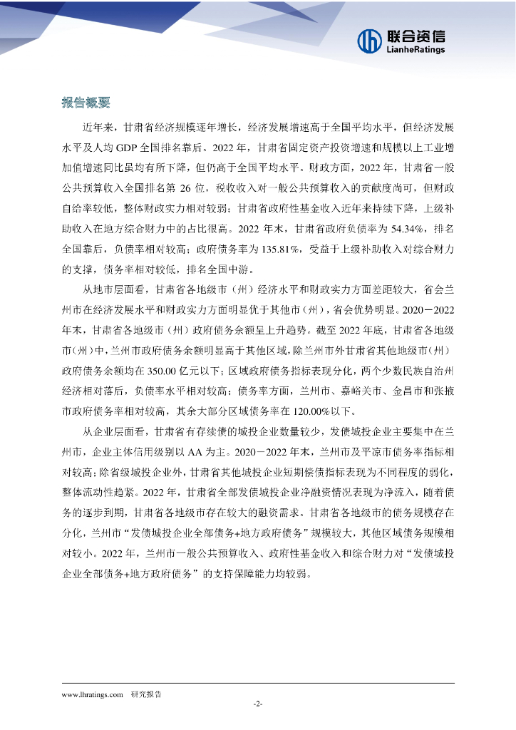 联合资信:2023年地方政府与城投企业债务风险研究报告——甘肃篇.pdf