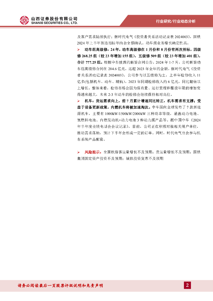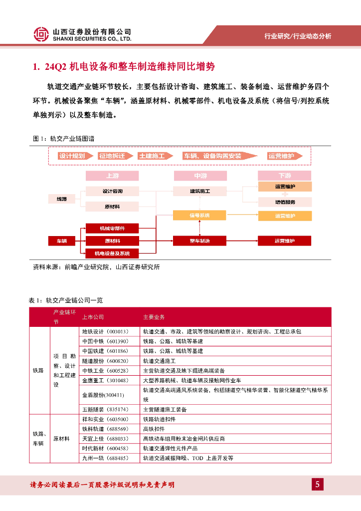 山西证券:运输设备24H1中报综述:轨交产业链分化,看好车辆和机电设备增长持续性.pdf
