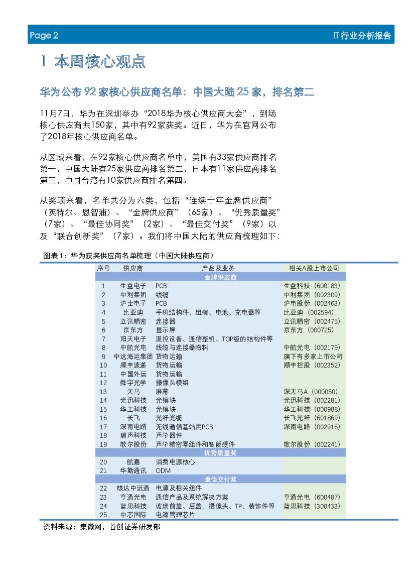 首创证券:IT行业周报:华为公布92家核心供应商名单:中国大陆25家,排名第二.pdf