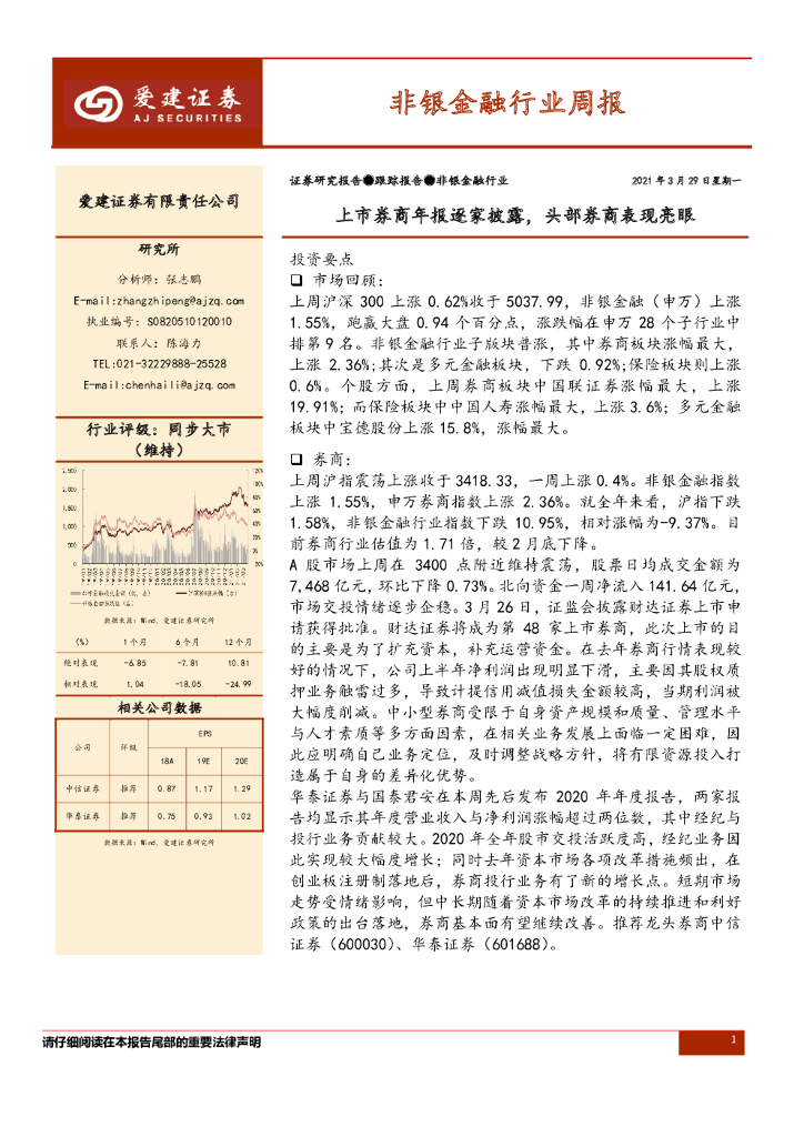 爱建证券:非银金融行业周报:上市券商年报逐家披露,头部券商表现亮眼.pdf