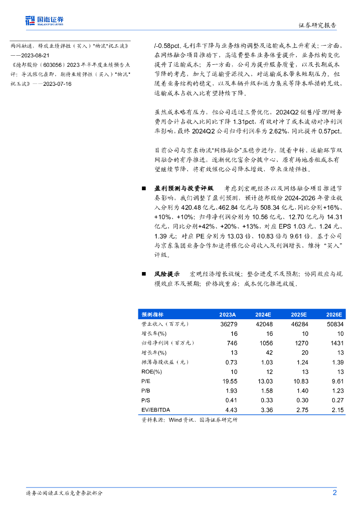 国海证券:德邦股份(603056)-2024年中报点评:收入利润稳增长,静待网络融合带来业绩弹性.pdf