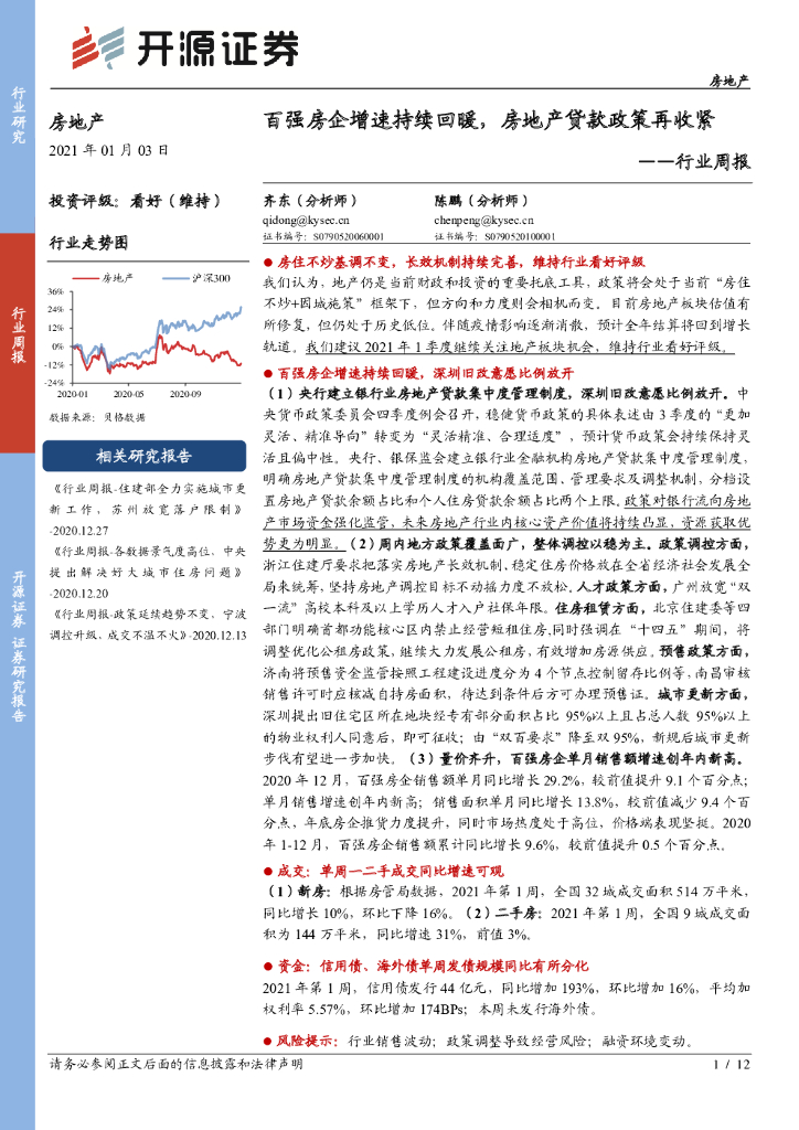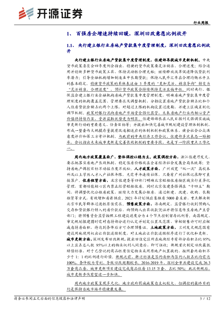 开源证券:房地产行业周报:百强房企增速持续回暖,房地产贷款政策再收紧.pdf