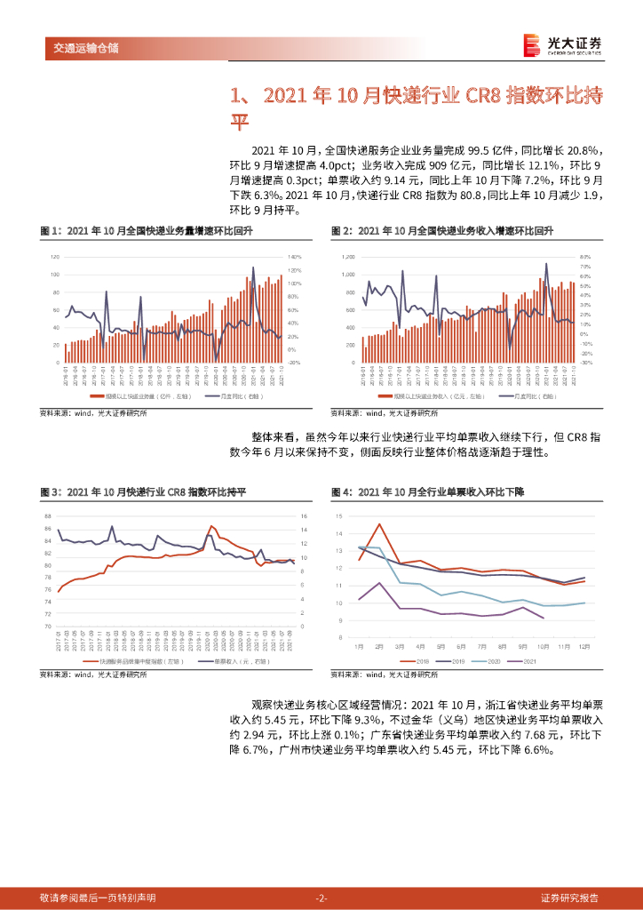 光大证券:快递行业2021年10月经营数据点评:行业CR8指数环比持平,价格战趋缓或将持续被验证.pdf