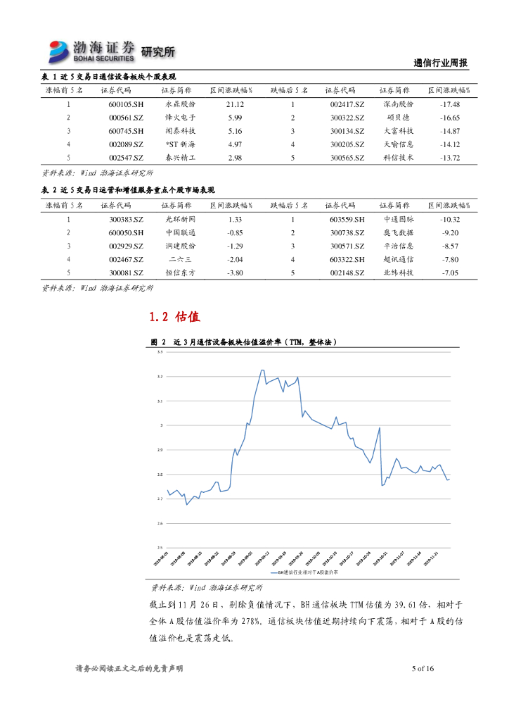 渤海证券:通信行业周报:运营商集采有序推进,明年5G建设加速可期.pdf