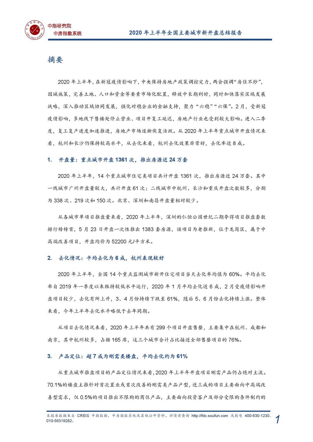 中国指数研究院:2020年上半年全国新开盘总结报告.pdf