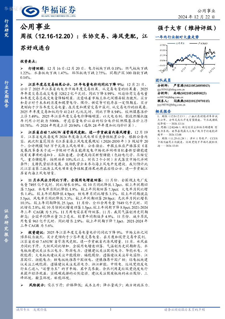 华福证券:公用事业行业周报:长协交易、海风竞配,江苏好戏连台.pdf