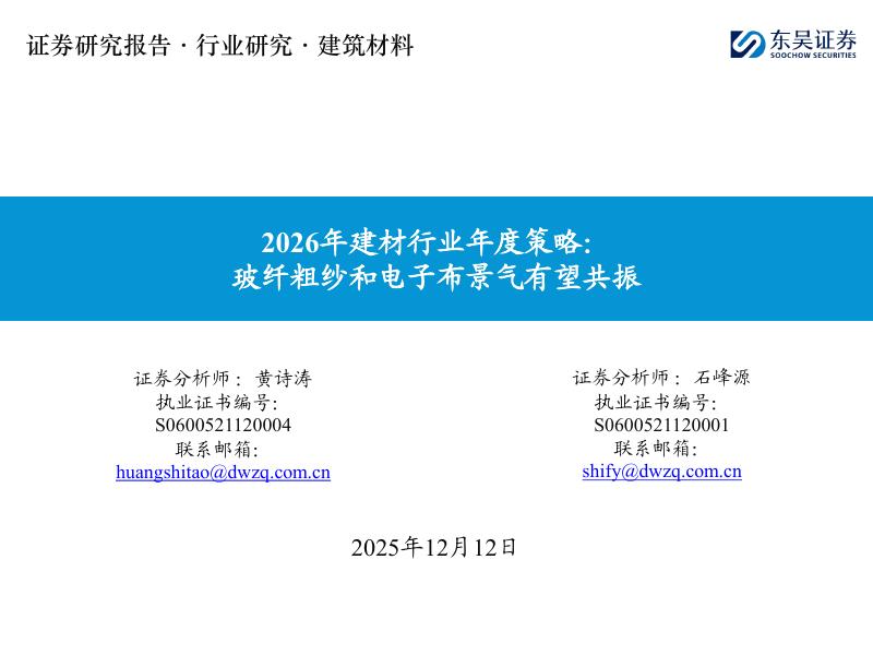 东吴证券:2026年建材行业年度策略:玻纤粗纱和电子布景气有望共振.pdf