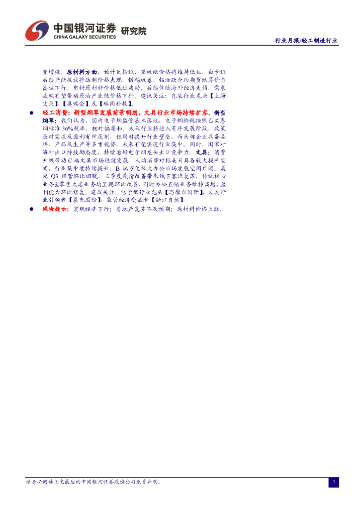 中国银河:轻工制造行业月报:多重因素持续向好,行业分化看好龙头.pdf