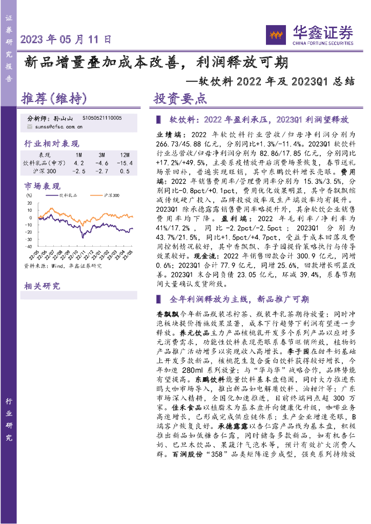 华鑫证券:软饮料2022年及2023Q1总结:新品增量叠加成本改善,利润释放可期.pdf