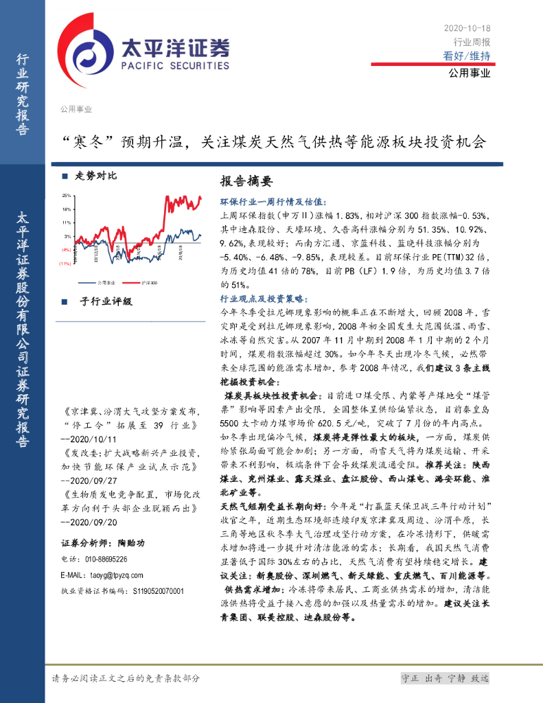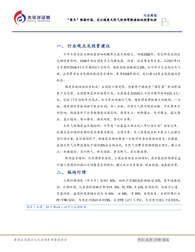 太平洋证券:公用事业行业周报:“寒冬”预期升温,关注煤炭天然气供热等能源板块投资机会.pdf