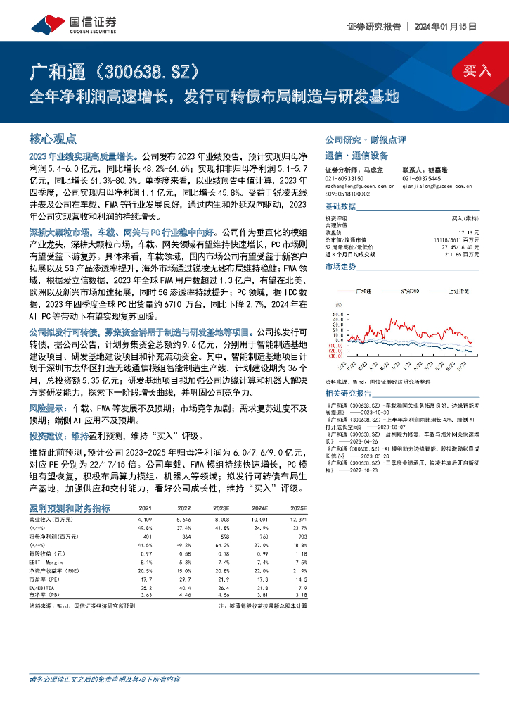 国信证券:广和通(300638)-全年净利润高速增长,发行可转债布局制造与研发基地.pdf