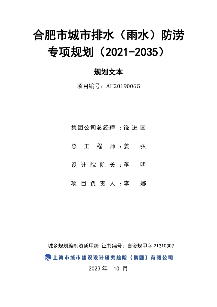 合肥市城市排水(雨水)防涝专项规划(2021-2035年)规划文本.pdf