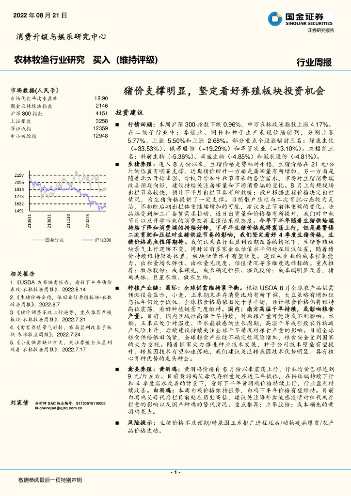 国金证券:农林牧渔行业研究:猪价支撑明显,坚定看好养殖板块投资机会.pdf