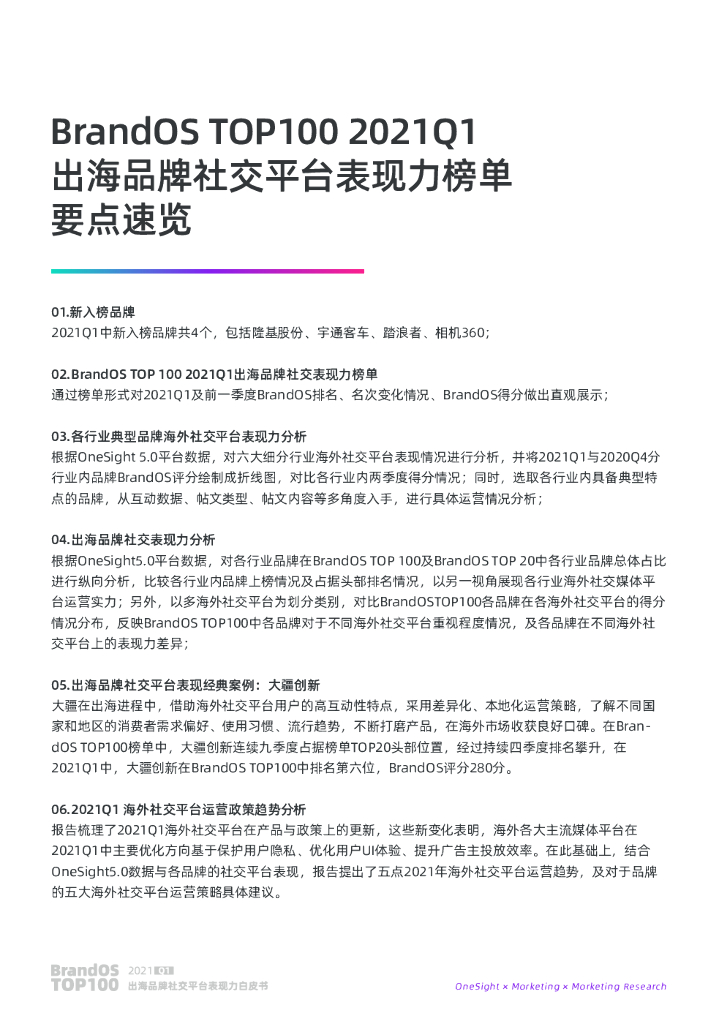 魔客学院&OneSight:BrandOS TOP100 2021Q1出海品牌社交平台表现力白皮书.pdf
