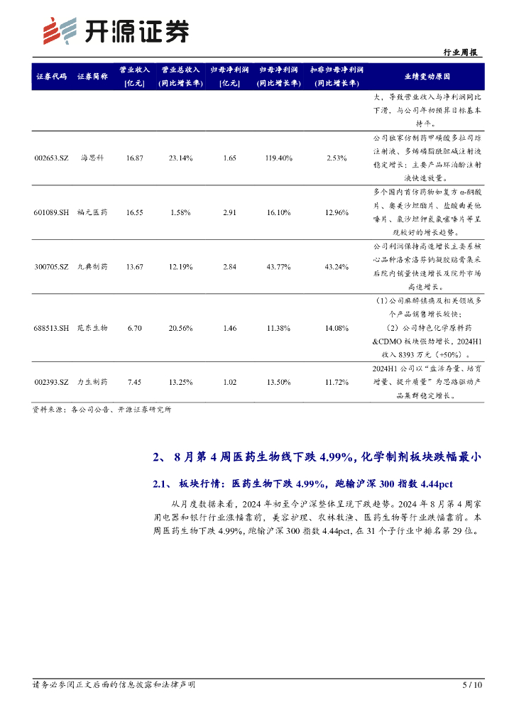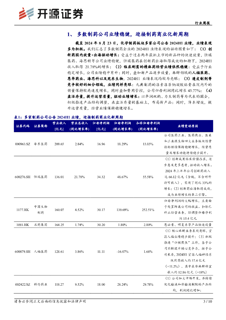 开源证券:医药生物行业周报:多数制药公司业绩稳健,迎接制药商业化新周期.pdf
