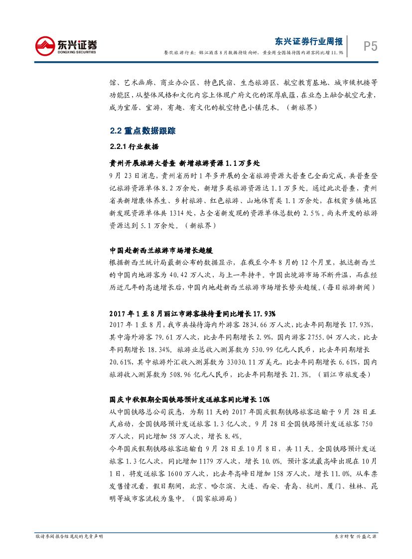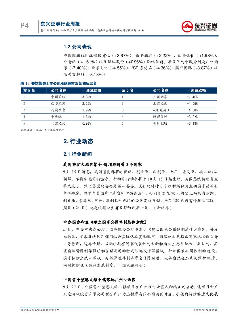 东兴证券:餐饮旅游行业2017年9月第4周周报:锦江酒店8月数据持续向好,黄金周全国接待国内游客同比增11.9%.pdf
