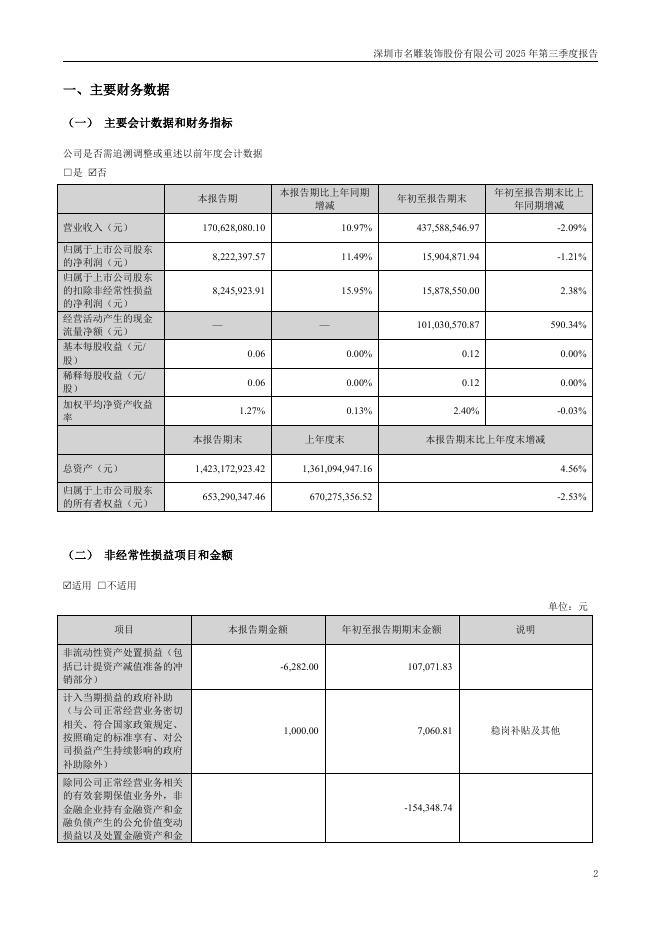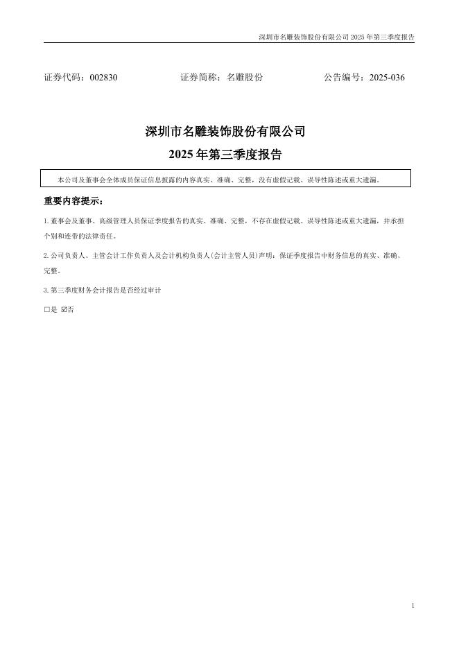 002830-名雕股份:2025年三季度报告.pdf