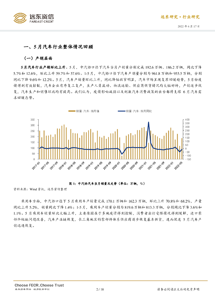 远东资信:2022年5月中国汽车行业与债券月度报告:产销降幅收窄明显,关注汽车消费政策落地后续影响.pdf