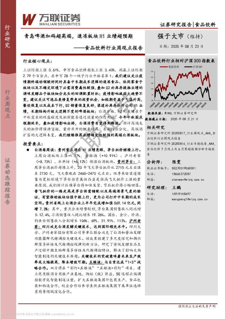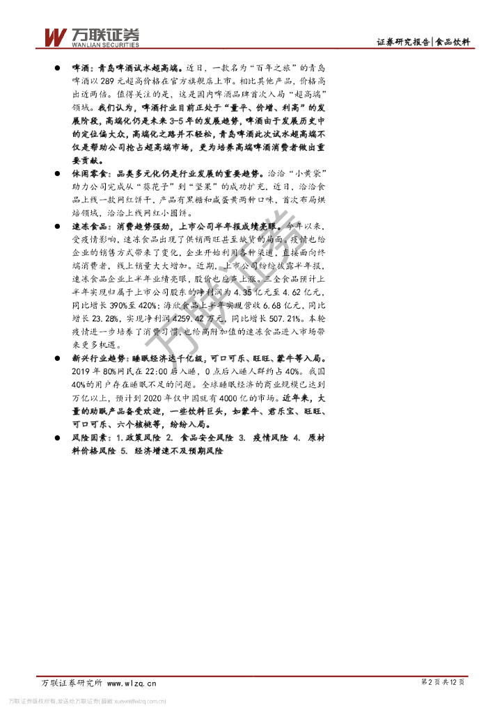 万联证券:食品饮料行业周观点报告:青岛啤酒加码超高端,速冻板块H1业绩超预期.pdf