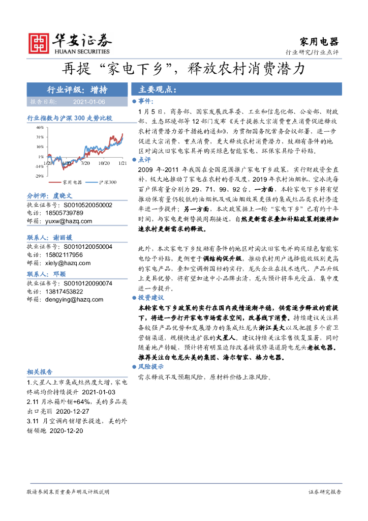 华安证券:家用电器:再提“家电下乡”,释放农村消费潜力.pdf