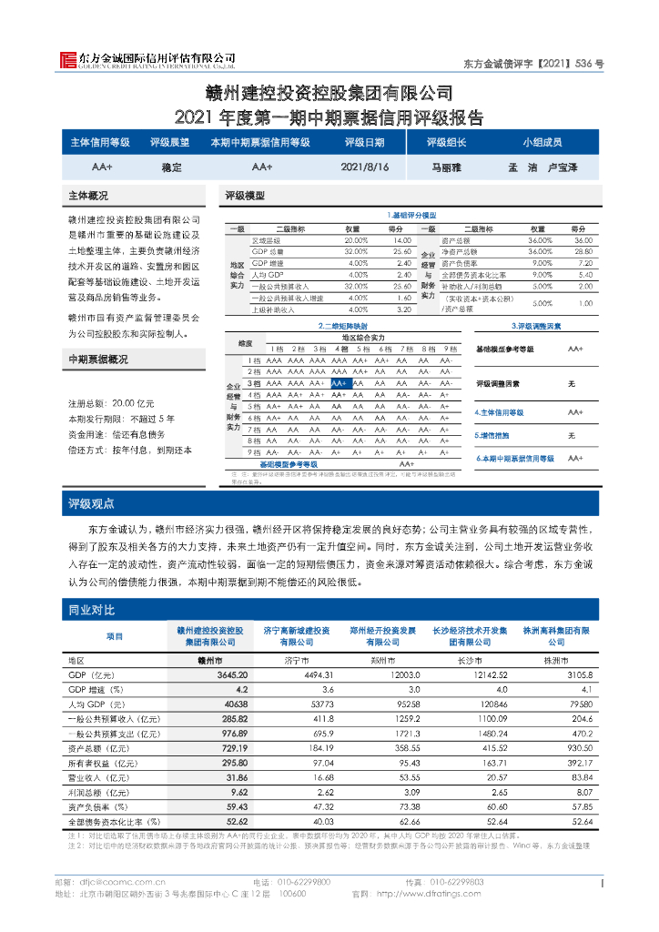 东方金诚:赣州建控投资控股集团有限公司主体信用评级报告及跟踪评级安排.pdf
