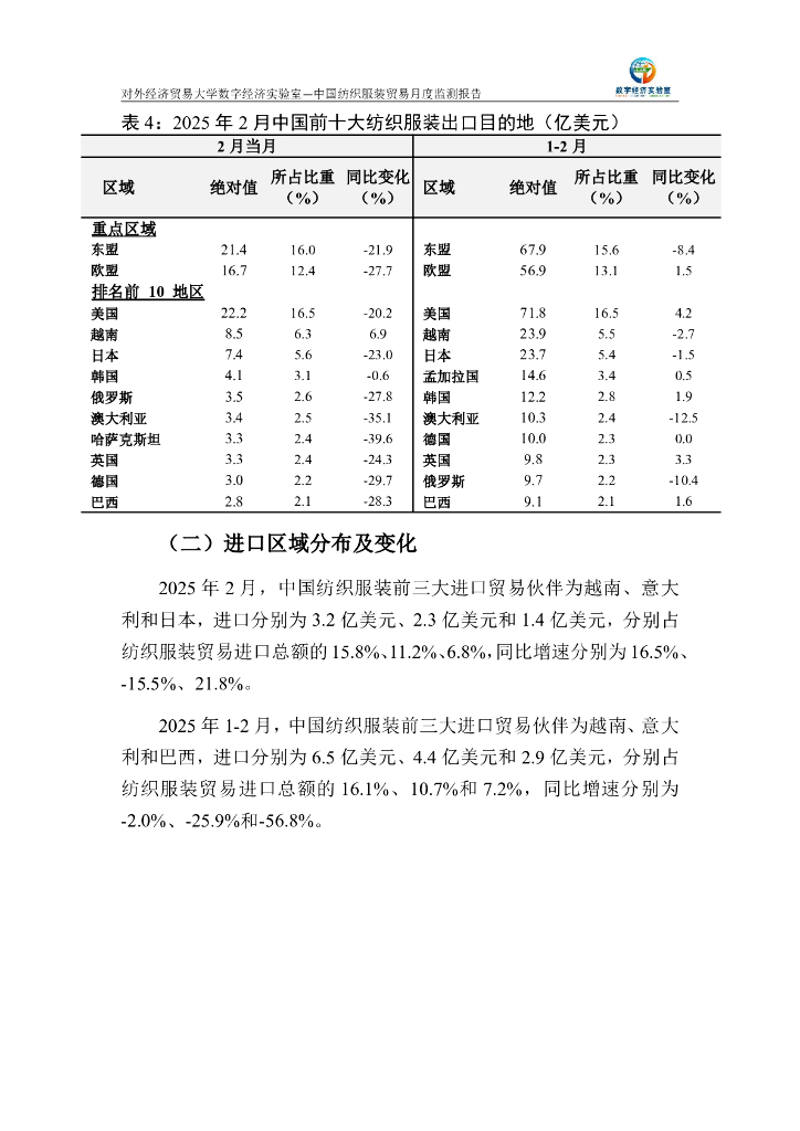 对外经济贸易大学:中国纺织服装贸易月度监测报告(2025年1-2月).pdf