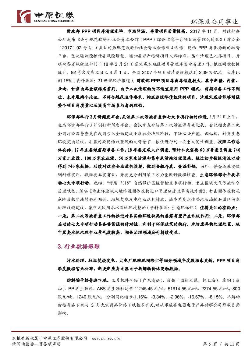 中原证券:环保及公用事业行业月报:财政部PPP项目库清理完毕,继续关注低估值成长股.pdf