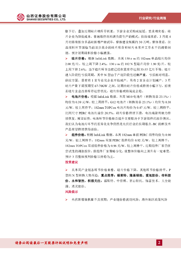 山西证券:太阳能行业周报:2024政府工作报告指出加强大型风光基地建设,硅片价格持续下行.pdf