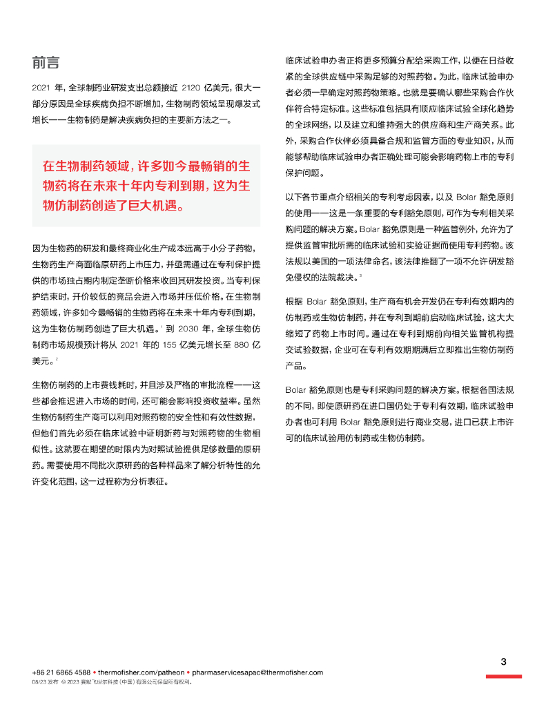 Thermo Fisher赛默飞:2023年对照药采购:利用Bolar豁免原则加速仿制药和生物近似药上市白皮书.pdf