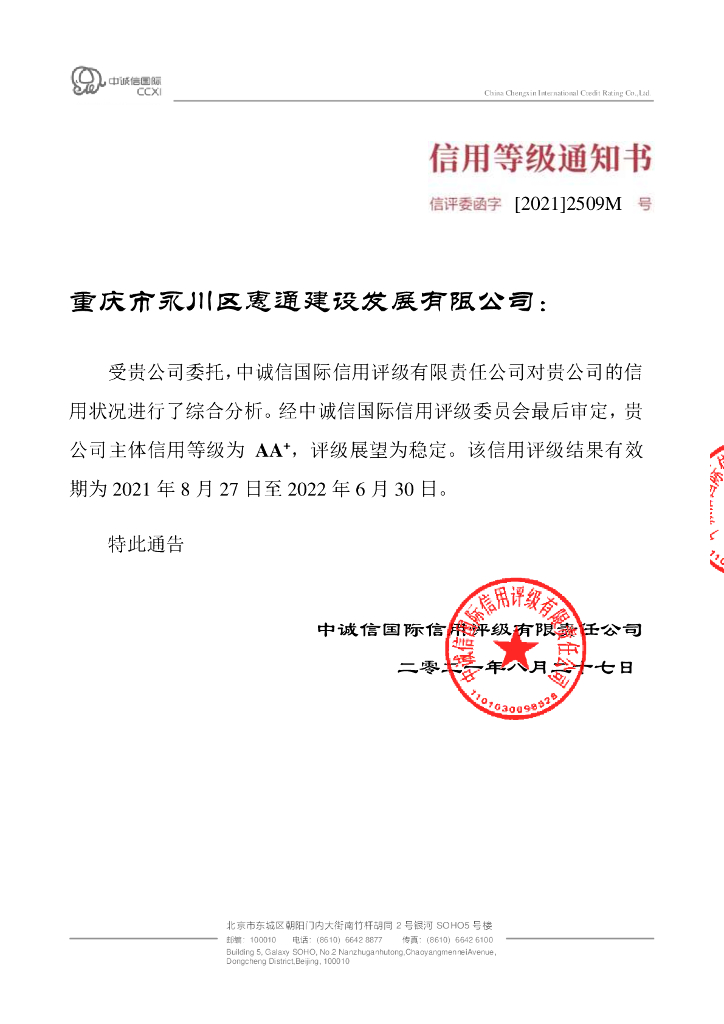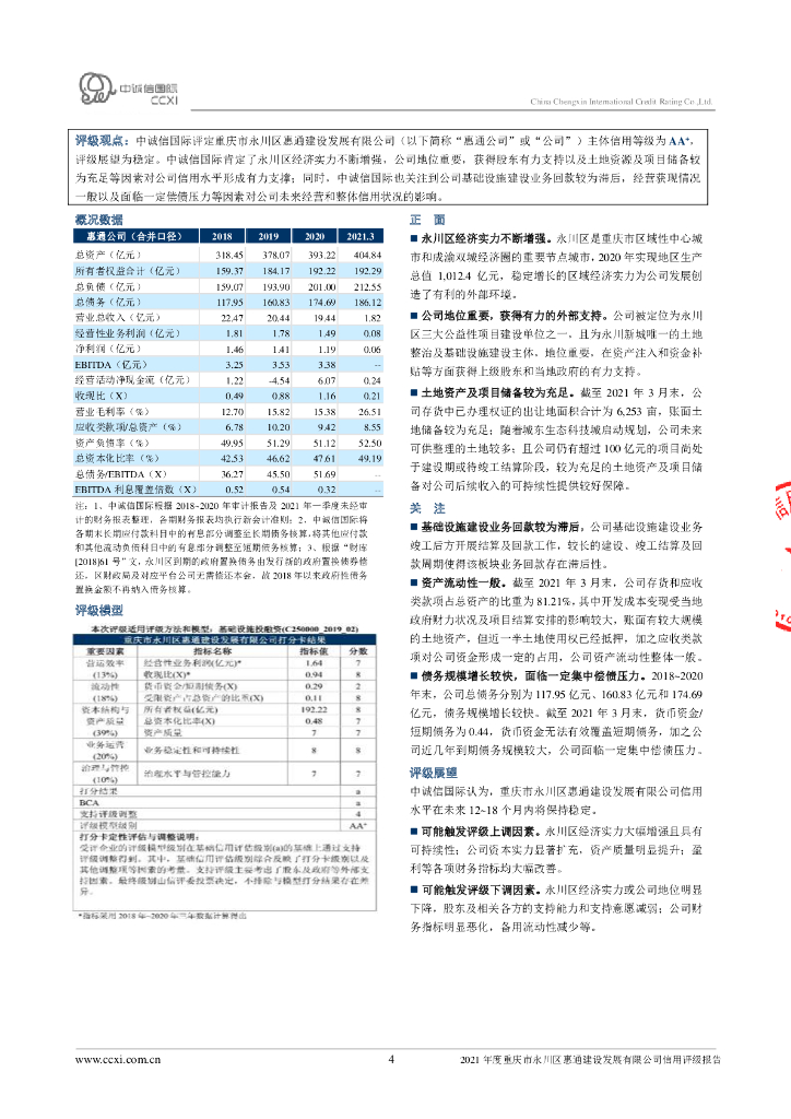 中诚信:重庆市永川区惠通建设发展有限公司主体信用评级报告及跟踪评级安排.pdf