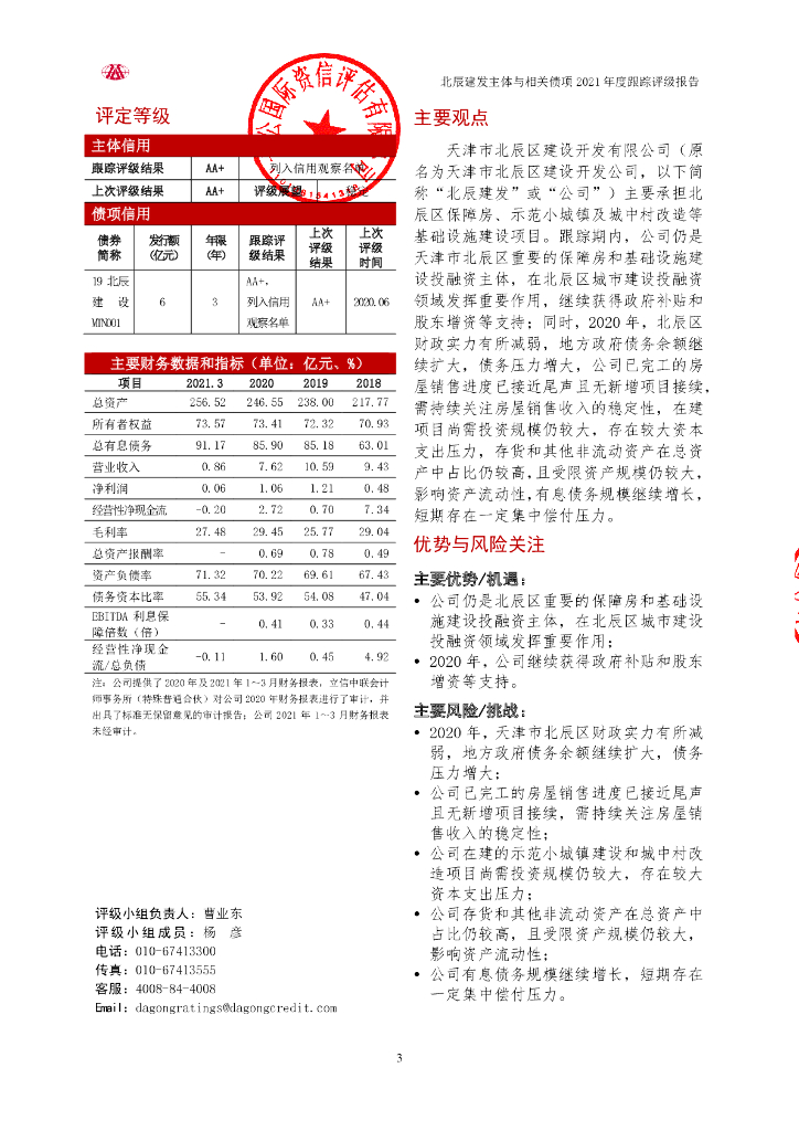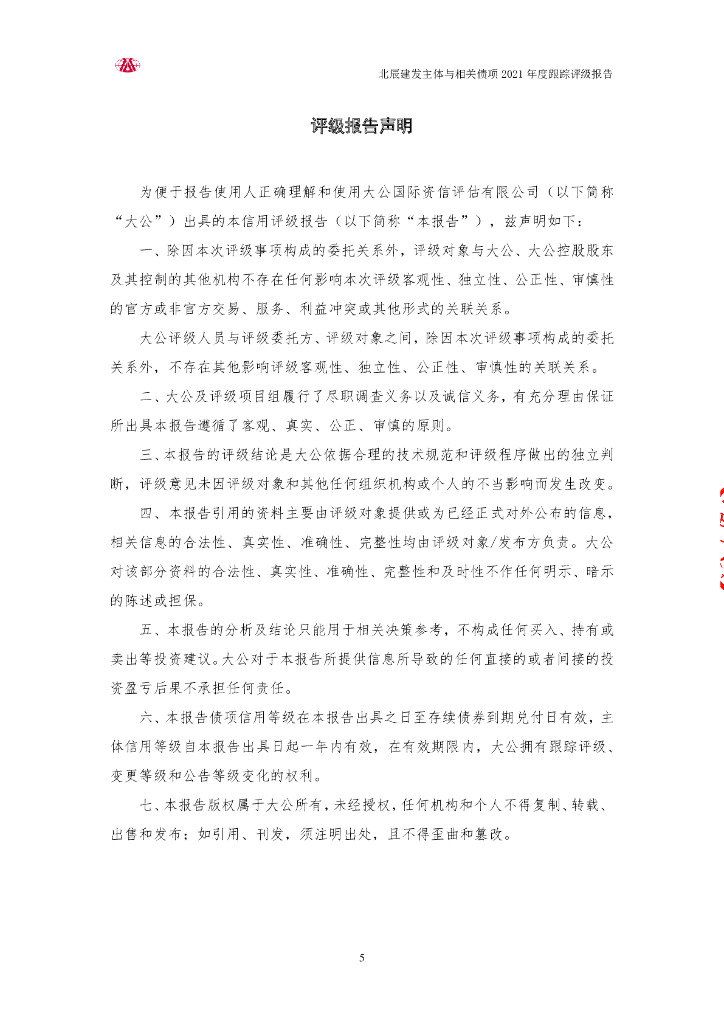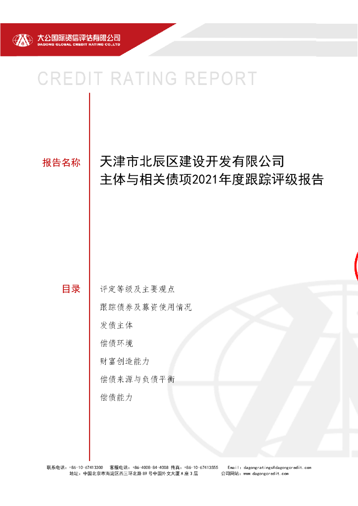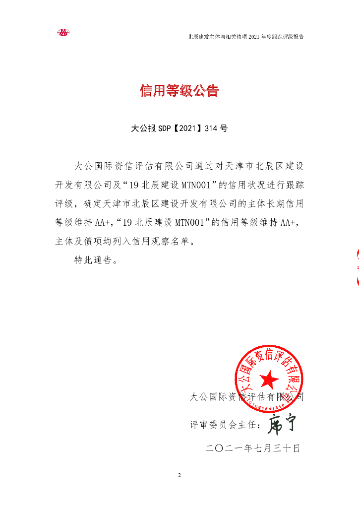 大公:天津市北辰区建设开发有限公司2021年度跟踪评级报告.pdf
