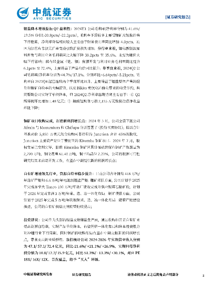 中航证券:中矿资源(002738)-2024H1点评:降本增效对冲锂周期,铜矿收购开启新曲线.pdf