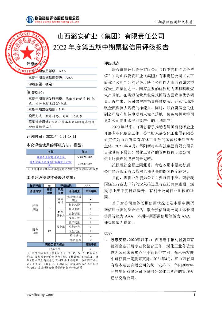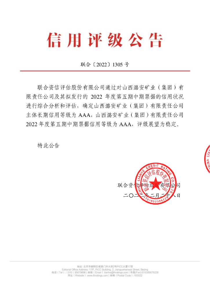 联合资信:山西潞安矿业(集团)有限责任公司2022年度第五期中期票据信用评级报告.pdf