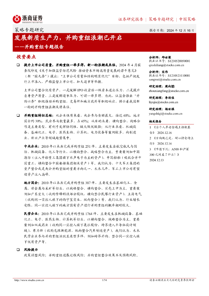 浙商证券:并购重组专题报告:发展新质生产力,并购重组浪潮已开启.pdf