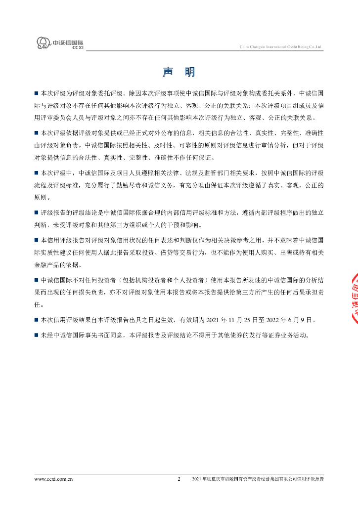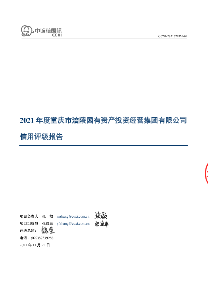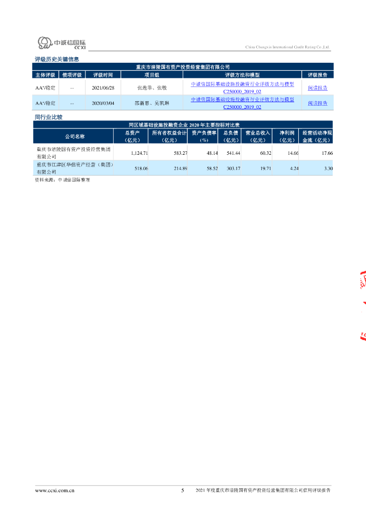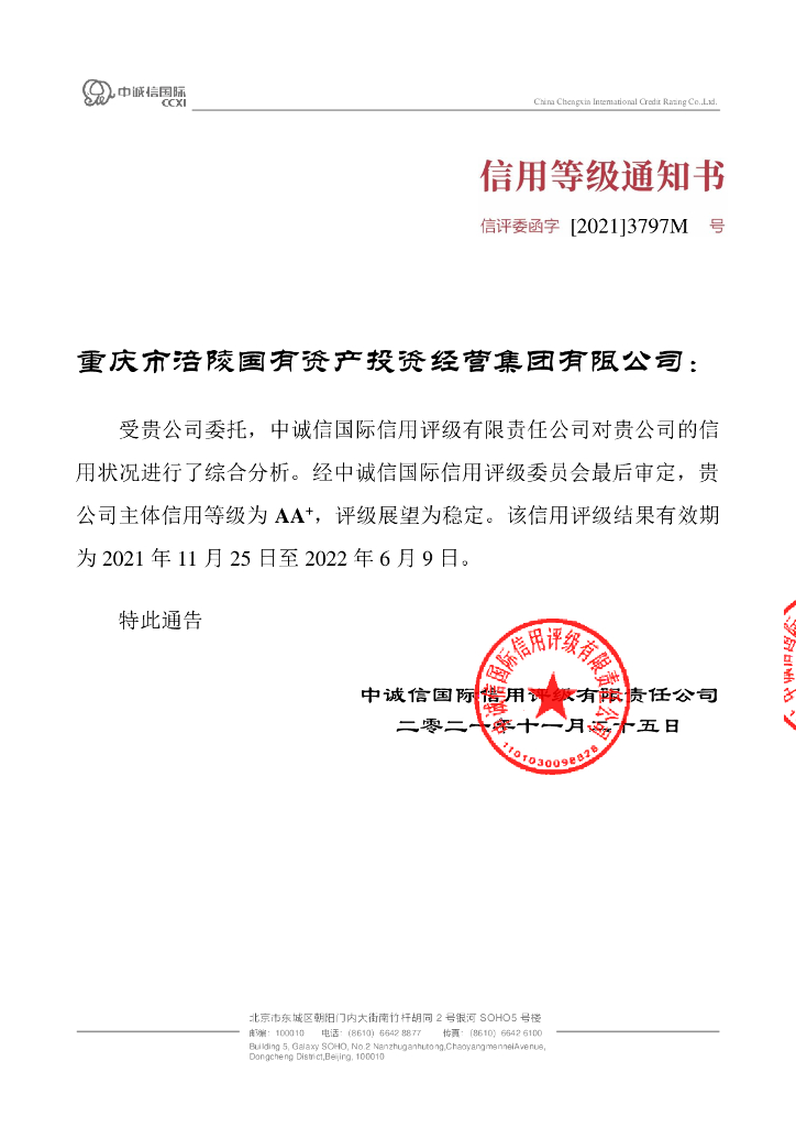 中诚信:2021年度重庆市涪陵国有资产投资经营集团有限公司信用评级报告.pdf