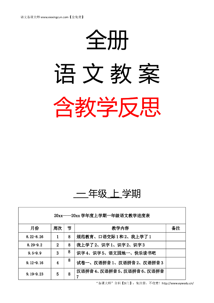 【新部编人教版】一年级上册全册语文教案(含教学反思,151页,Word版).doc