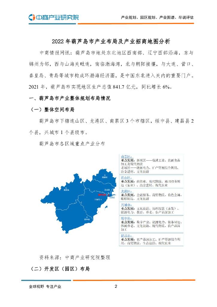 中商产业研究院:2022年葫芦岛市产业布局及产业招商地图分析.pdf