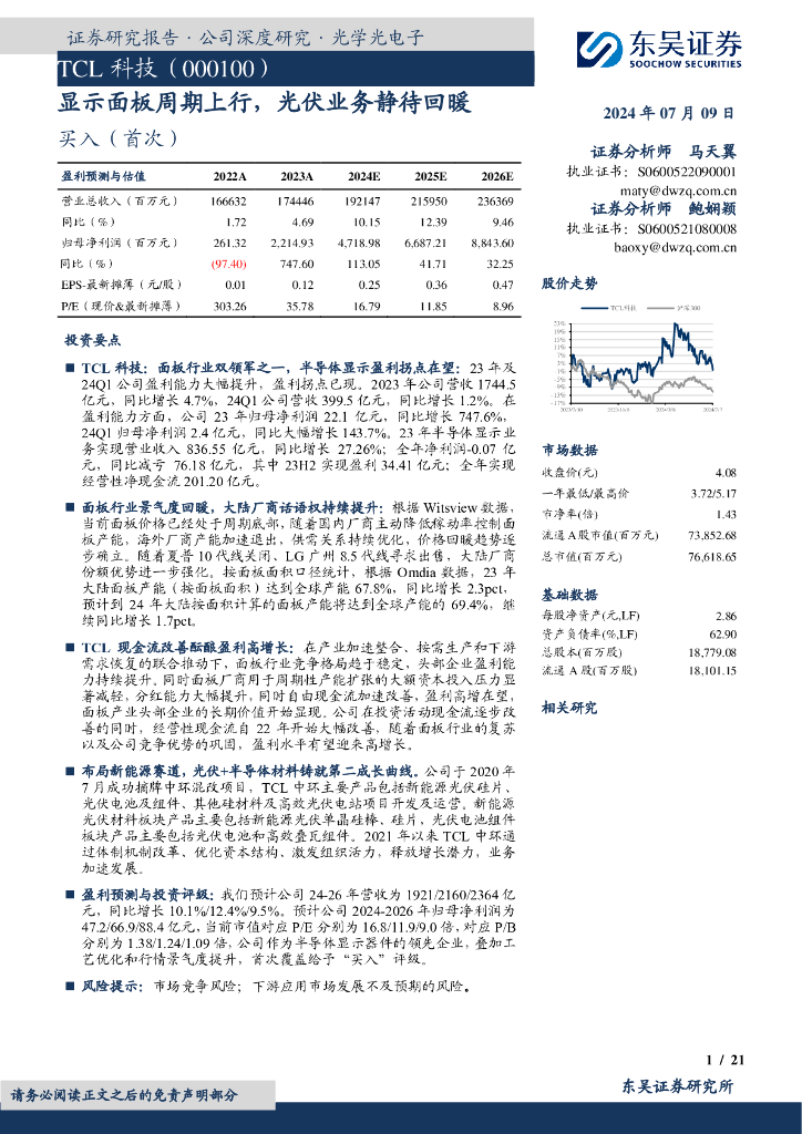 东吴证券:TCL科技(000100)-显示面板周期上行,光伏业务静待回暖.pdf