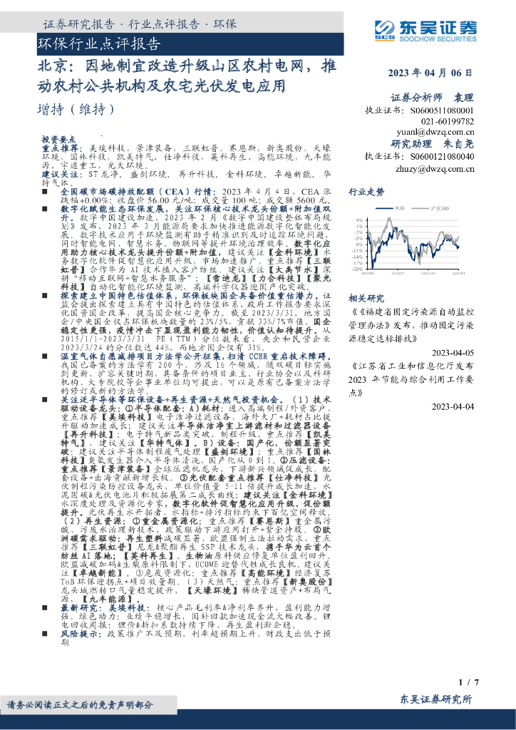 东吴证券:环保行业点评报告:北京:因地制宜改造升级山区农村电网,推动农村公共机构及农宅光伏发电应用.pdf